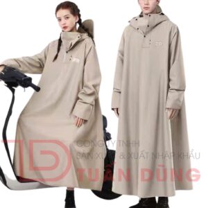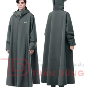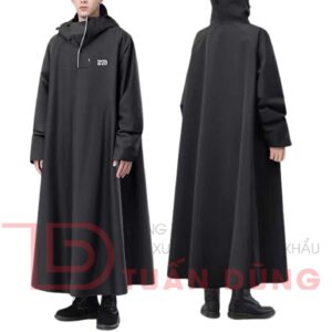 Sản phẩm trong hình là một chiếc áo mưa phong cách thời trang hiện đại với thiết kế dài, rộng và thoải mái. Dưới đây là một số đặc điểm nổi bật: